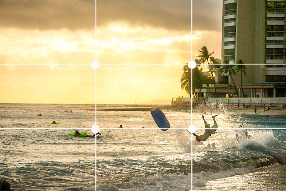 や線上に、主要な被写体や水平線などを配置する基本的な構図技法